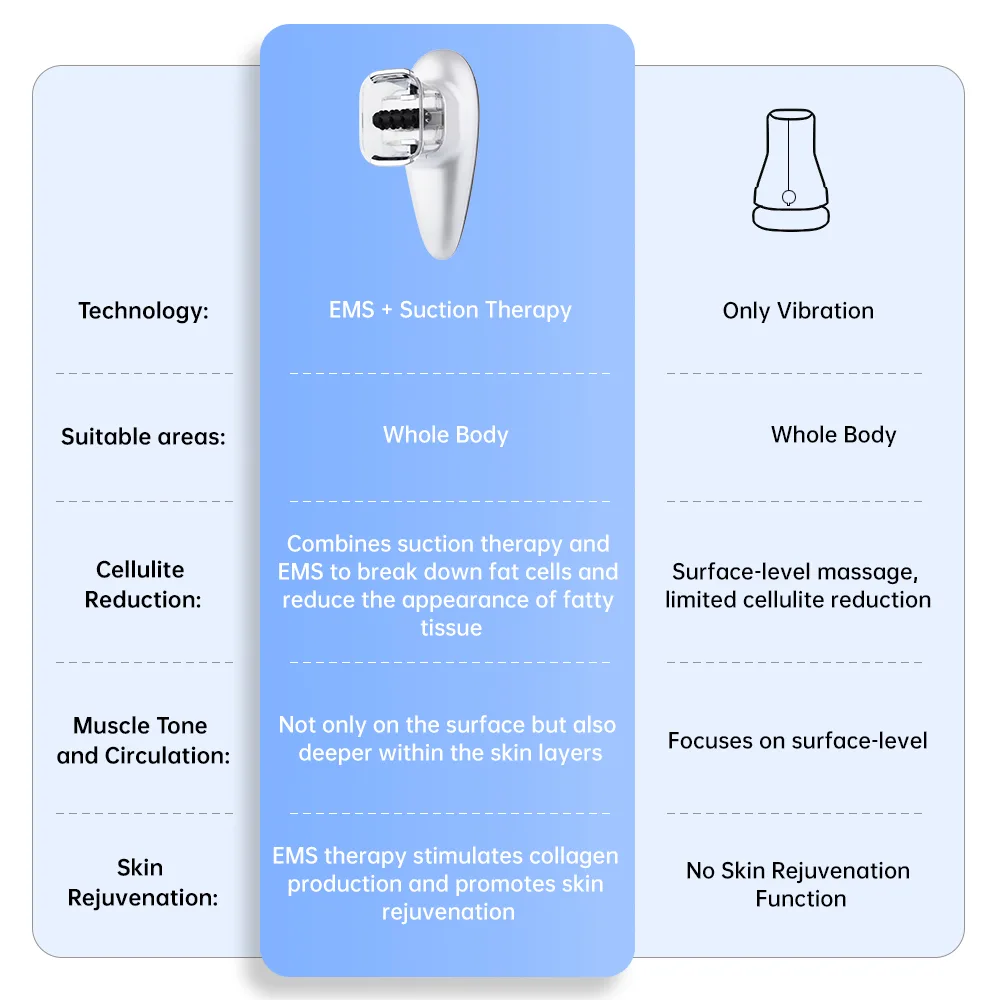 - Experience the ultimate cellulite massager that combines the power of deep-tissue roller massage, EMS technology, and vacuum suction therapy for visible and tangible results.