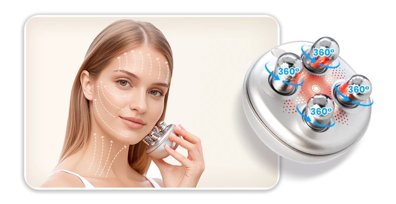 Four independent rollers rotate 360° to fit the contours of the face,