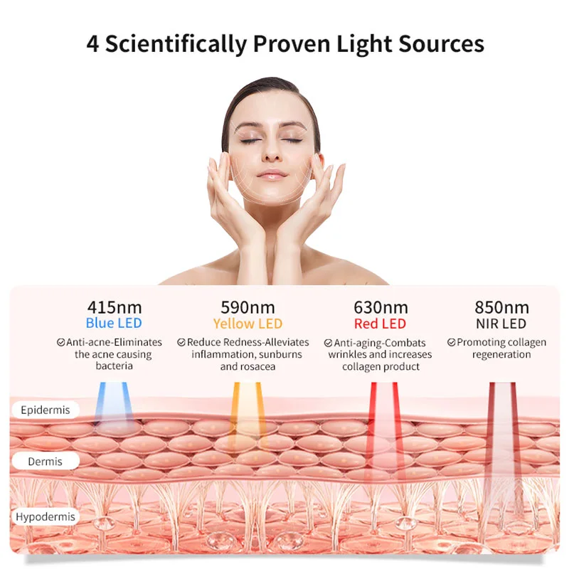 - Illuminate your skin’s natural beauty using the combined prowess of red, blue, yellow, and infrared lights.