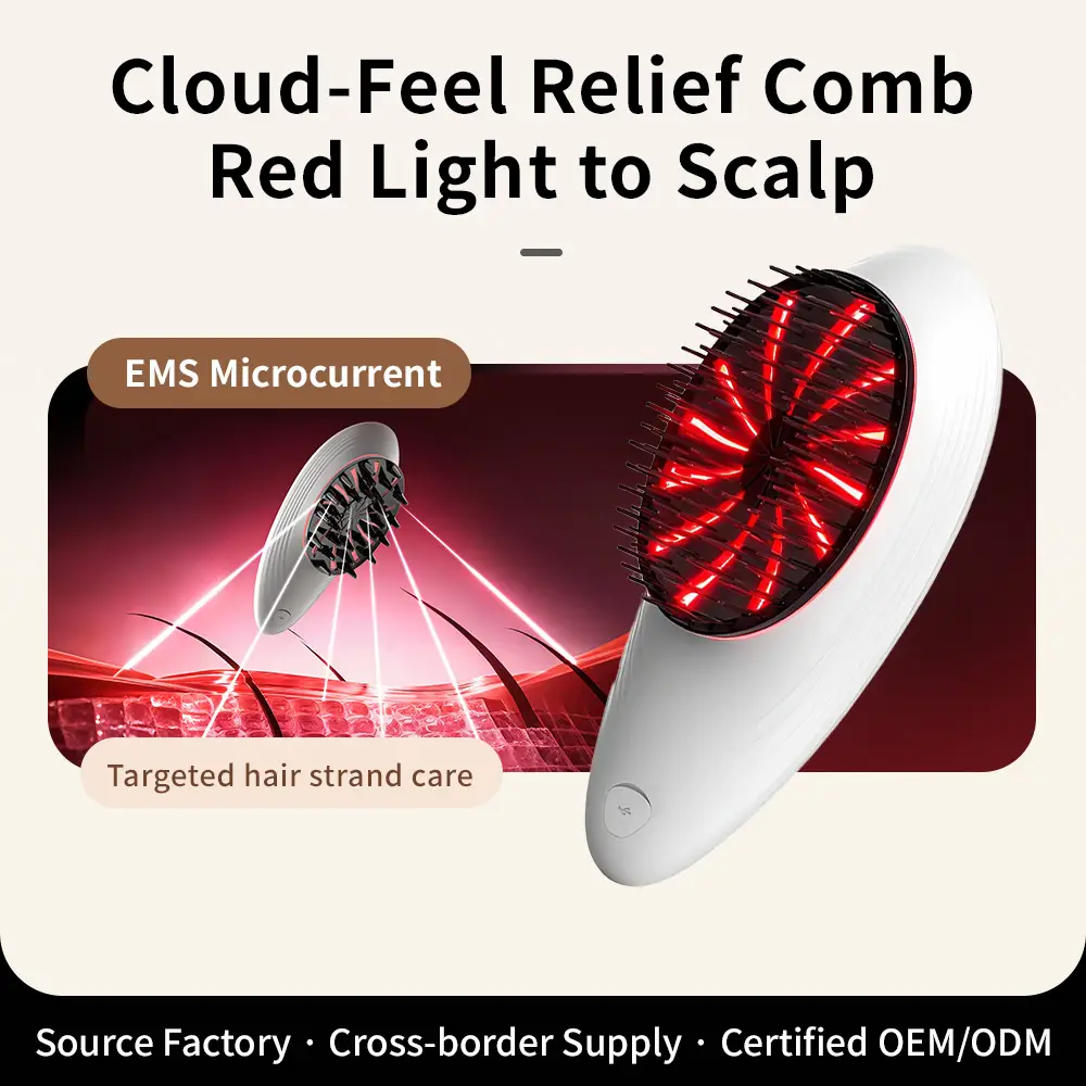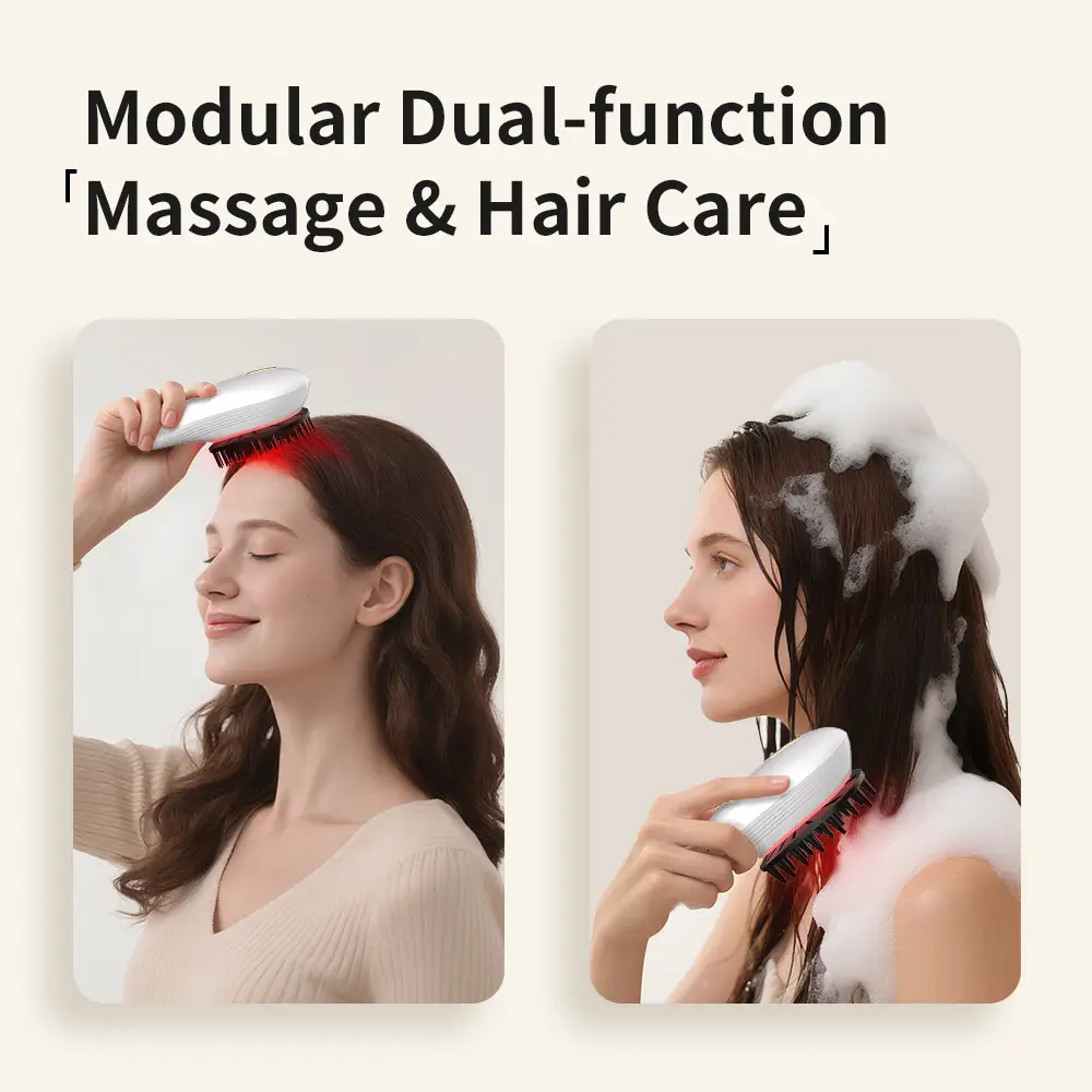 This scalp massager is designed to deliver both instant stress relief and ongoing scalp health benefits. It combines EMS microcurrent with red light technology to relax tight scalp muscles in the moment, while also supporting improved circulation and scalp vitality over time—making it an ideal option for brands targeting both beauty and wellness-conscious consumers.