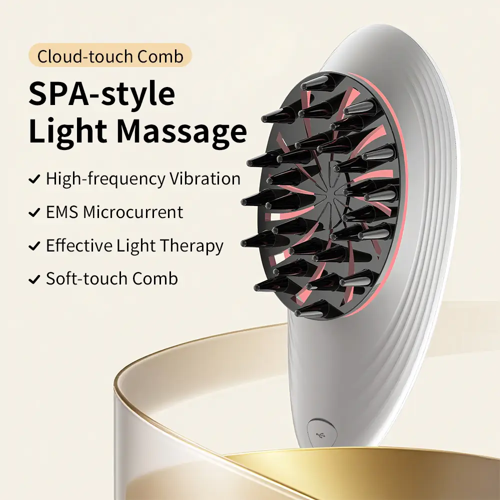 - EMS + Vibration + Red Light Technology: EMS activates hair follicles, high-frequency vibration relieves tension, and 630nm red light promotes circulation and scalp health.