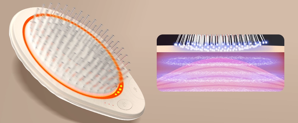 Red LED light (around 630–660nm) penetrates deep into the scalp to enhance cellular activity, support collagen production, and encourage hair regrowth. Studies have shown red light therapy can effectively reduce hair loss and improve hair density over time.
